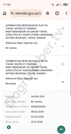 Azərbaycan Respublikasının Elm və Təhsil Nazirliyi yanında Məktəbəqədər və Ümumi Təhsil üzrə Dövlət Agentliyinin Lənkəran-Astara Regional Təhsil İdarəsi ilə bağlı dövlət satınalmaları portalında yerləşdirilən məlumat ictimaiyyət arasında müəyyən suallar doğurur.