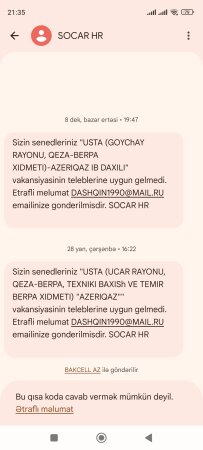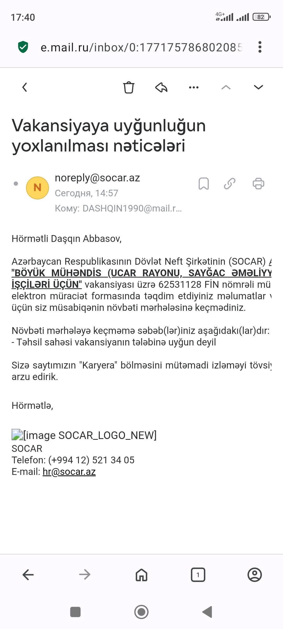 - Böyük mühəndis vəzifəsi üçün — təhsilimin uyğun olmaması.