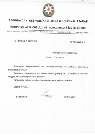 1. Omudsman Aparatı – müraciətə cavab verib.