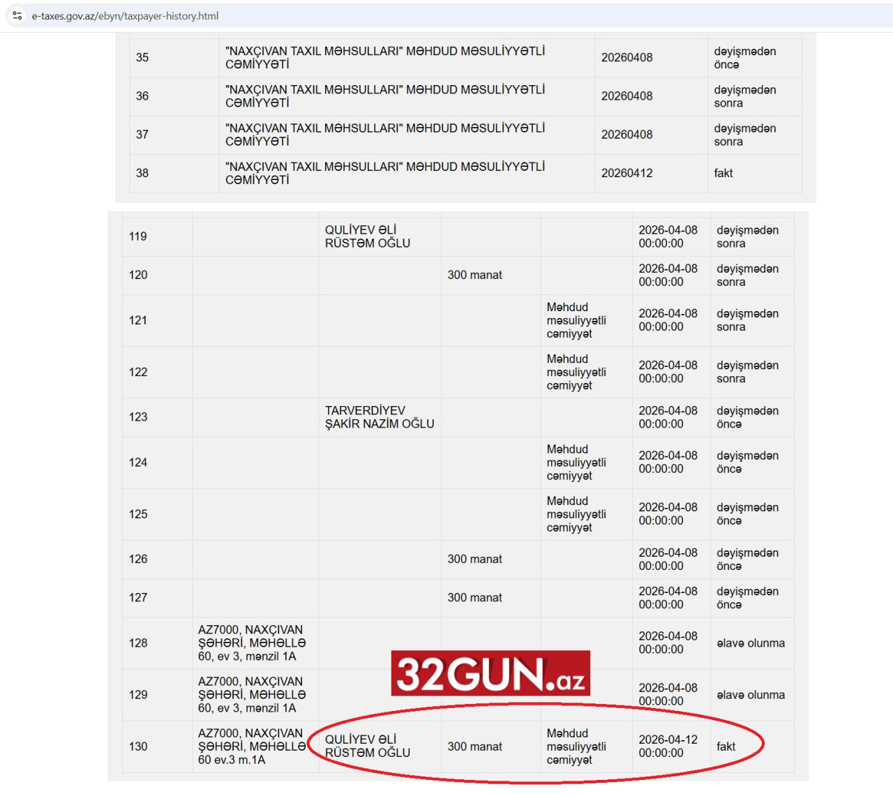 32gun.az-ın əldə etdiyi məlumata görə, sözügedən MMC-nin rəhbəri və qanuni təmsilçisi Şakir Tarverdiyevin qayınatası Əli Rüstəm oğlu Quliyev olub.