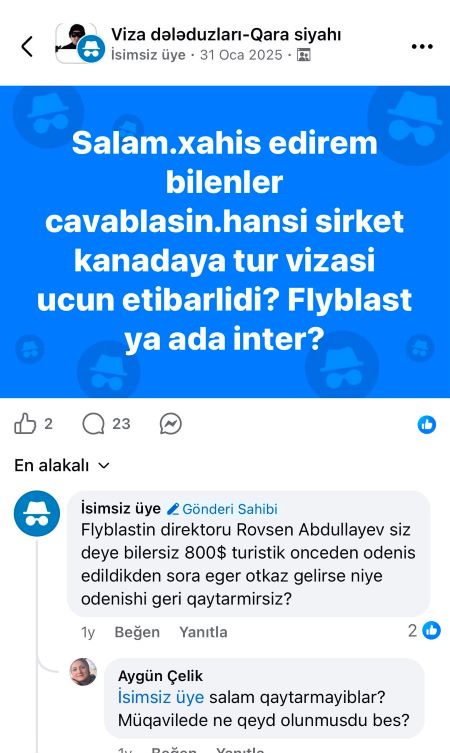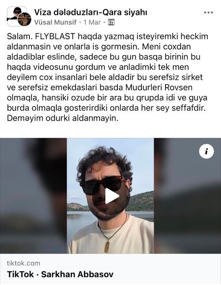 AzFakt.com xəbər verir ki, sosial şəbəkələrdə vətəndaşların şikayətlərində qeyd olunur ki, Flyblast Travel Agency ilə müqavilə bağlayan şəxslər aylarla hətta illərlə süründürməçiliyə məruz qalır, proseslər süni şəkildə uzadılır və nəticədə bir çox hallarda viza alınmır. Bu isə ödəniş edilmiş xidmətin faktiki göstərilməməsi kimi qiymətləndirilir.