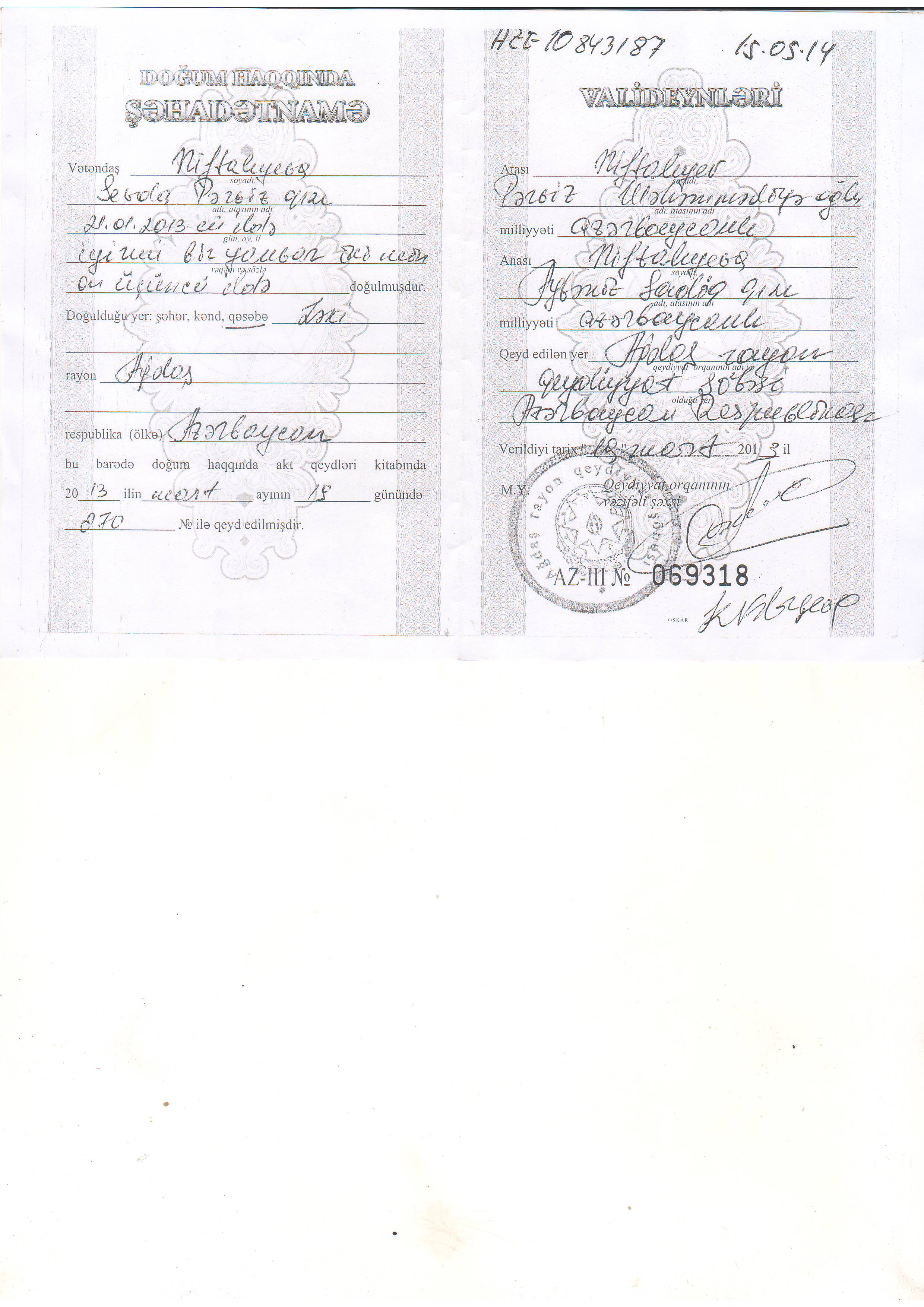Qeyd edim ki, Fəridə Osmanova ixtisasca pediatr həkimi olsa da Ləki xəstəxanasında doğuşları həyata keçirməklə məşğuldur. Bunun nəticəsidir ki, doğuş zamanı uşaqlar “travma” alıb ömürlük şikəst olurlar, bir neçə ölüm faktı olub. 21.01.2013-cü il tarixdə doğuşdan sonra uşaq dayanmadan saatlarla ağladı azyaşlıya ağır dozalı sakitləşdirici iynə vurulmasına baxmayaraq sakitləşmədi. Səriştəsizlik edən Fəridə həkim bunun səbəbini öyrənmək üçün uşağı bizimlə birlikdə Mingəçevirdəki Xəstəxanaya həkimə apardı bizim iştirakımız olmadan müayinə edildi və bizə yalandan dedi ki, guya uşağın beynində bərkimə getdiyindən ağlayır, qorxulu heç nə yoxdur.