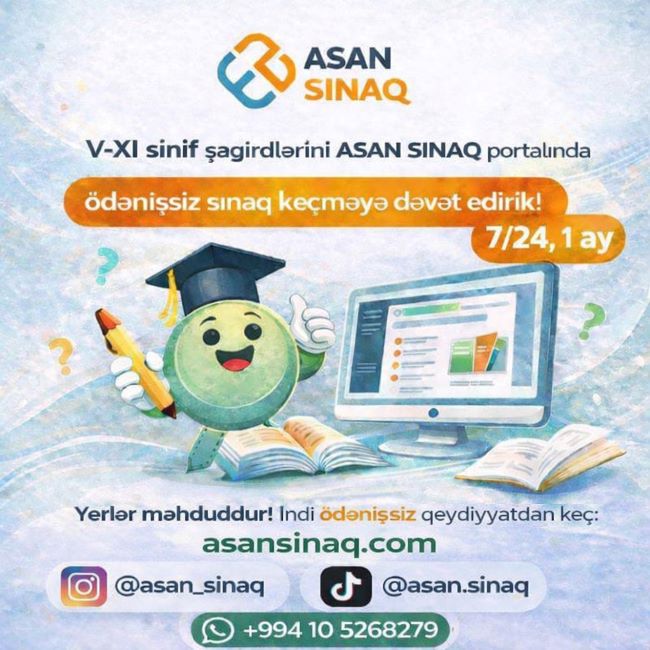 "ASAN SINAQ sınaqdan daha çox şagirdin inkişafına fokuslanır: mövzular üzrə güclü və zəif tərəfləri göstərir, şagirdin inkişaf dinamikasını məqsədyönlü izləməyə imkan yaradır.