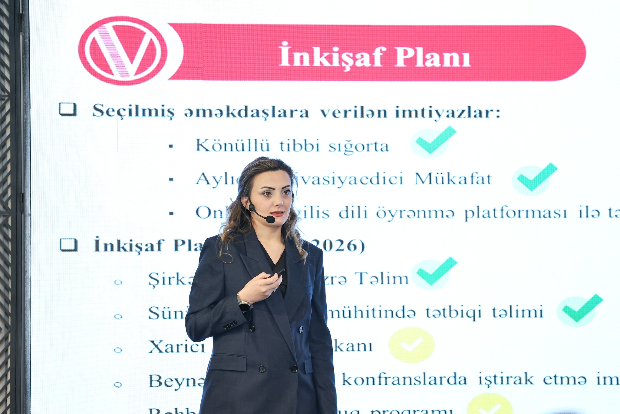 Tədbirdə “OBA” MMC-nin İdarə Heyətinin sədri Natəvan İbrahimova “Liderliyə gedən yol: VŞQ daxilində karyera inkişafı və CEO baxışı” mövzusunda çıxış edərək, şəxsi karyera yolu, liderlik baxışı və gələcək liderlər üçün vacib kompetensiyalar barədə dəyərli fikirlərini iştirakçılarla bölüşüb.